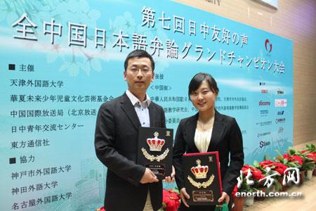 上海外国语大学吴月顺同学(右)勇夺全国总冠军特等奖