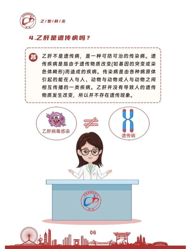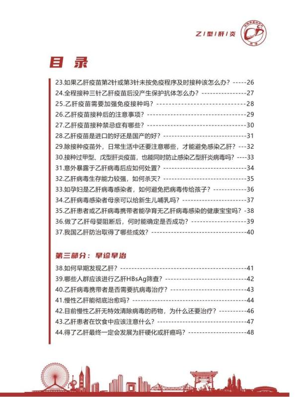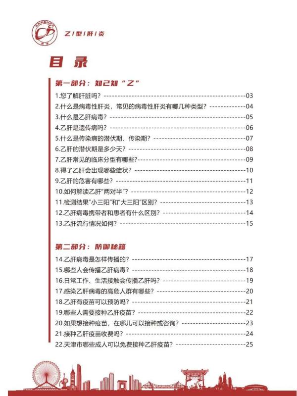 乙型肝炎是我国重点防控的乙类传染病,该病危害大,可导致肝硬化、肝癌。中国以疫苗接种、阻断传播为主的综合防控策略取得显著成效,目前已从高流行区降至中流行区,但估算目前仍约每17个人中就有1人为慢性乙肝病毒感染者,是我国重要的公共卫生问题。天津市疾病预防控制中心原创开发《乙型肝炎防治科普五十问》科普读本,该册以一问一答形式,通过“知己知乙”、“防御秘籍”、“早诊早治”、“科学对待”四部分对乙型肝炎的危害、传播途径、预防措施、诊断治疗及防治政策等公众关心的核心问题进行了专业又通俗的讲解,帮助公众提高认识,科学预防、主动筛查、规范诊疗和消除歧视,促进病毒性肝炎专业人员宣传教育能力的提升,持续助力消除病毒性肝炎公共卫生危害。